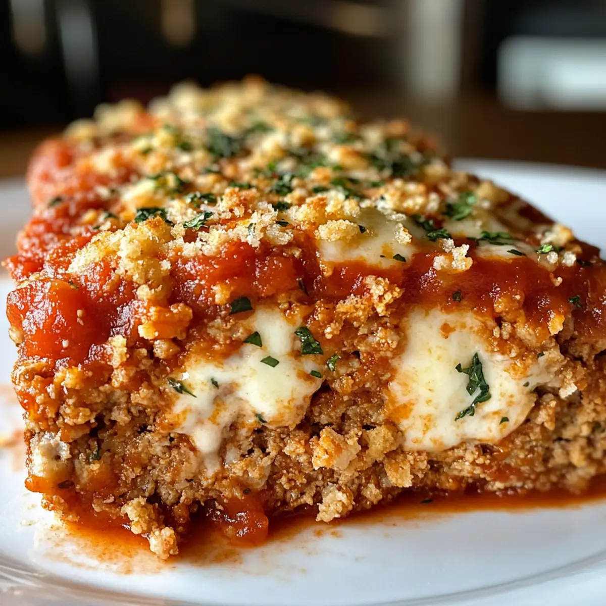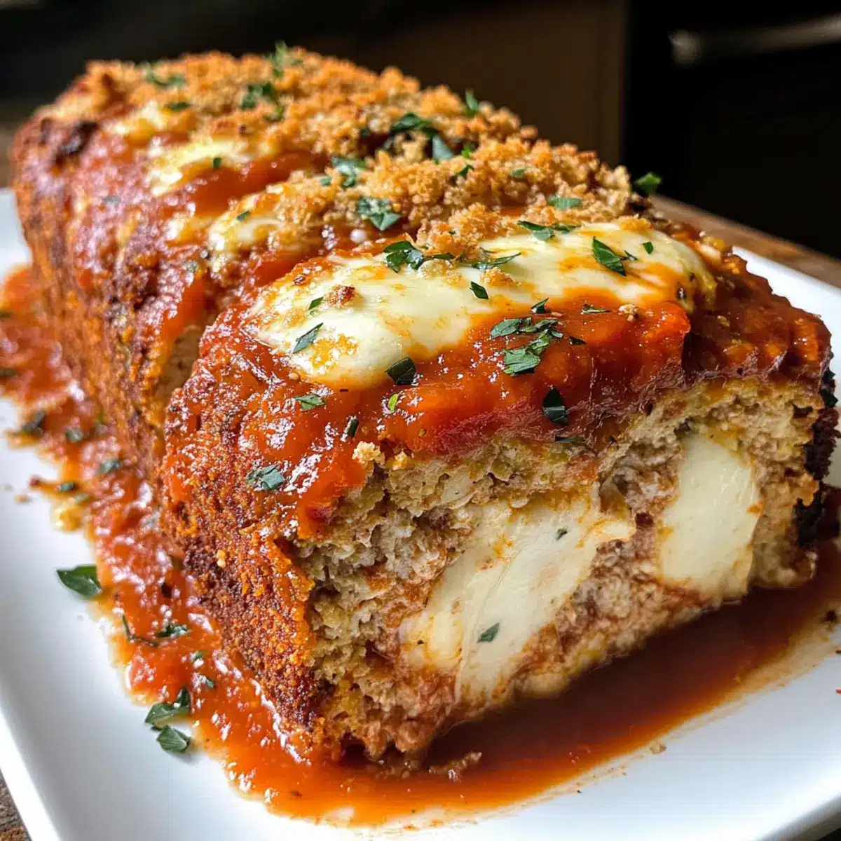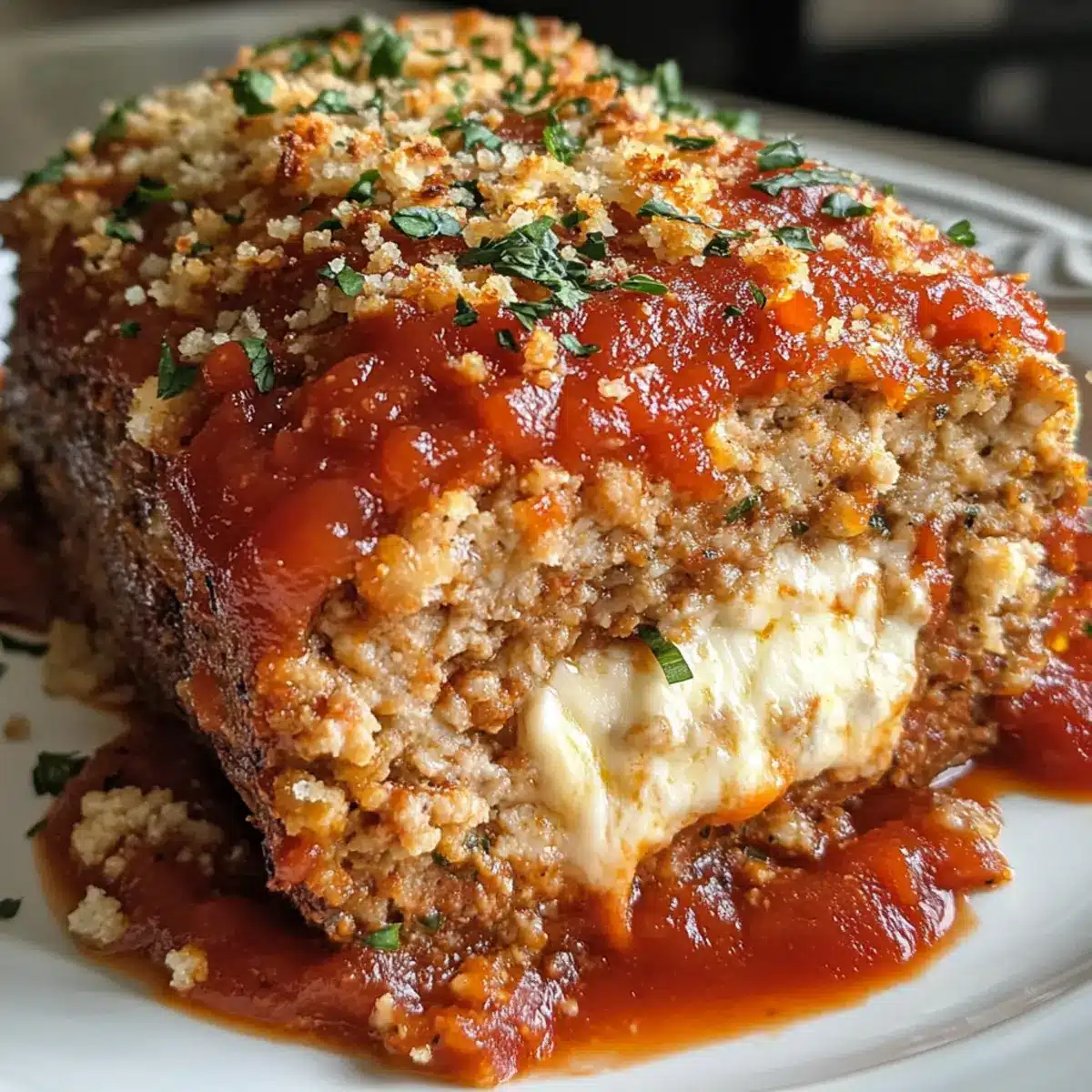 Parmesanhühnchenfleischlaib mit Mozzarellaüberraschung