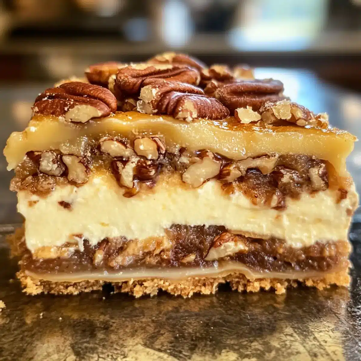 - Füllung abkühlen lassen: Lass die Pekanfüllung vor dem Schichten leicht abkühlen, um die Cream Cheese-Schicht nicht zu schmelzen.