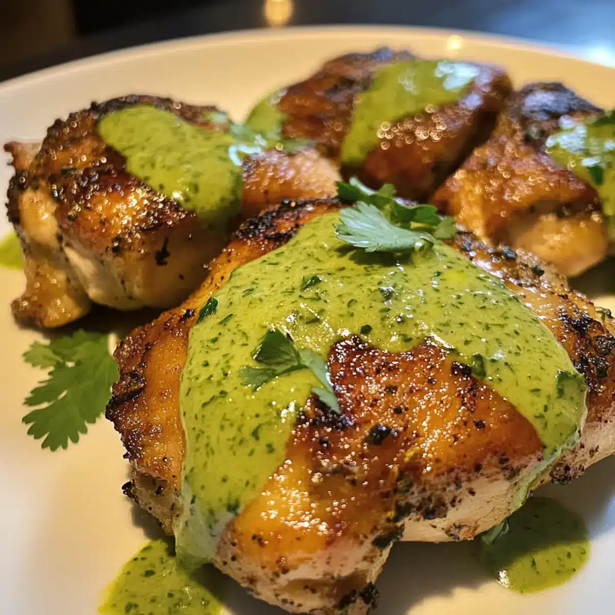 - Serviere das Hühnchen mit der cremigen grünen Sauce und genieße.
