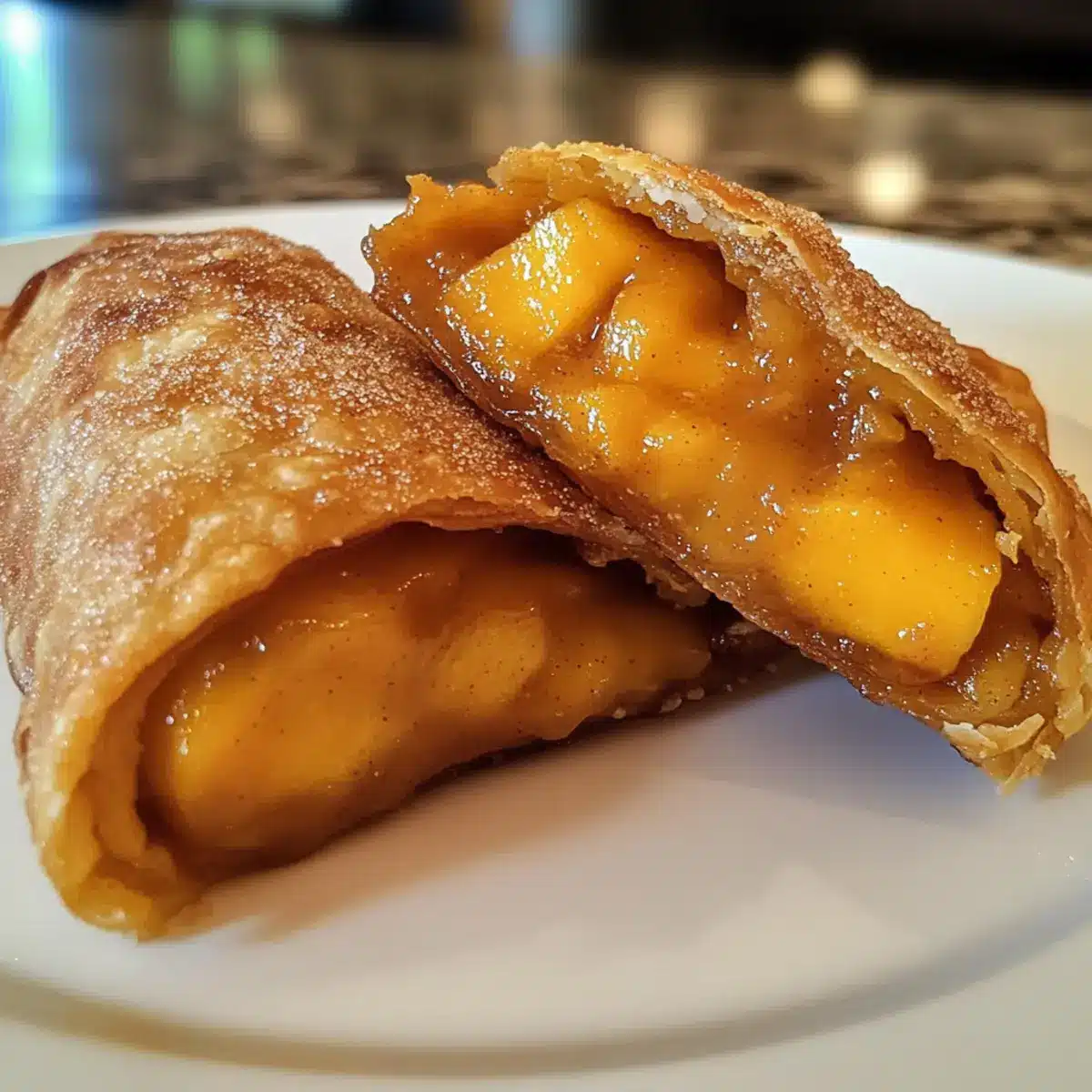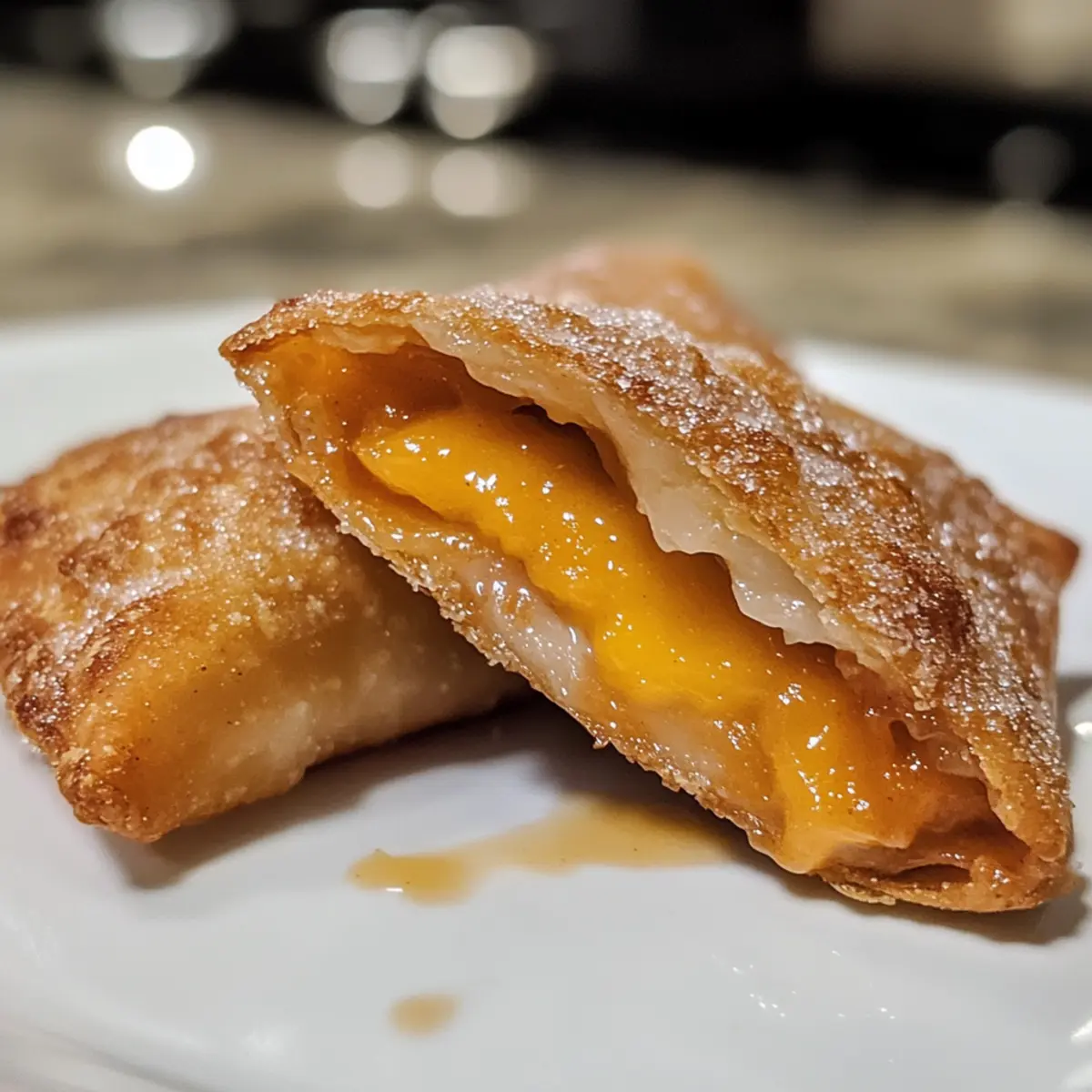 Frittierzeit im Blick: Frittieren Sie die Pfirsich-Cobbler-Eirollen in kleinen Portionen, um eine gleichmäßige Bräunung und Knusprigkeit zu gewährleisten.