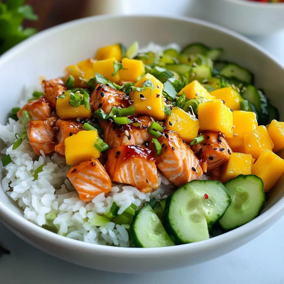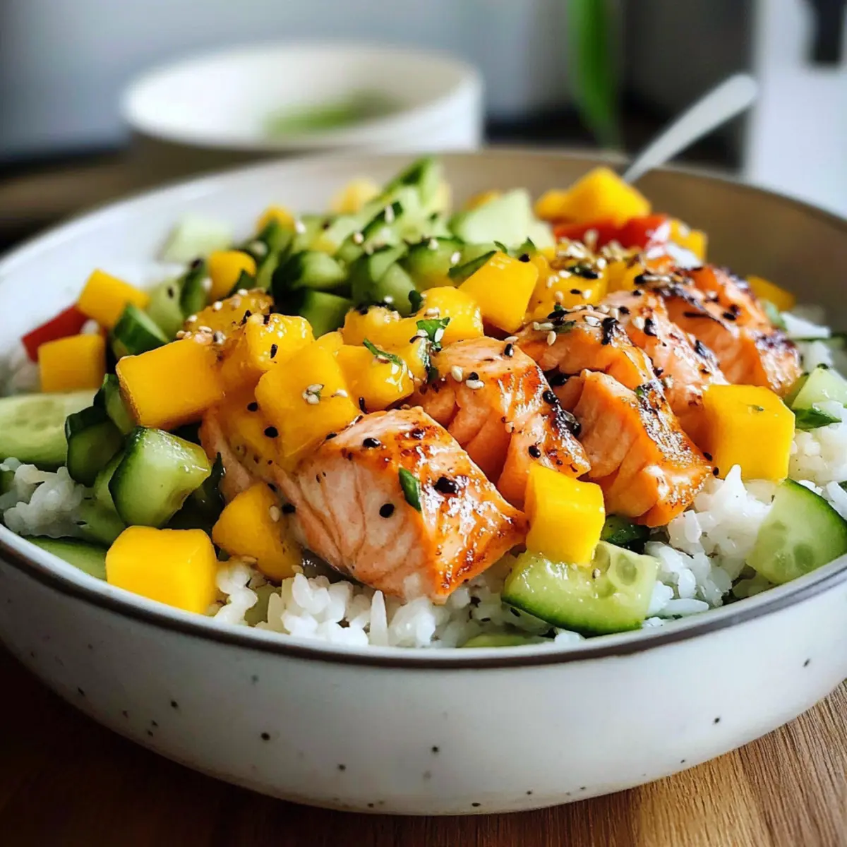 Reissalat mit Lachs und Mango für heiße Tage