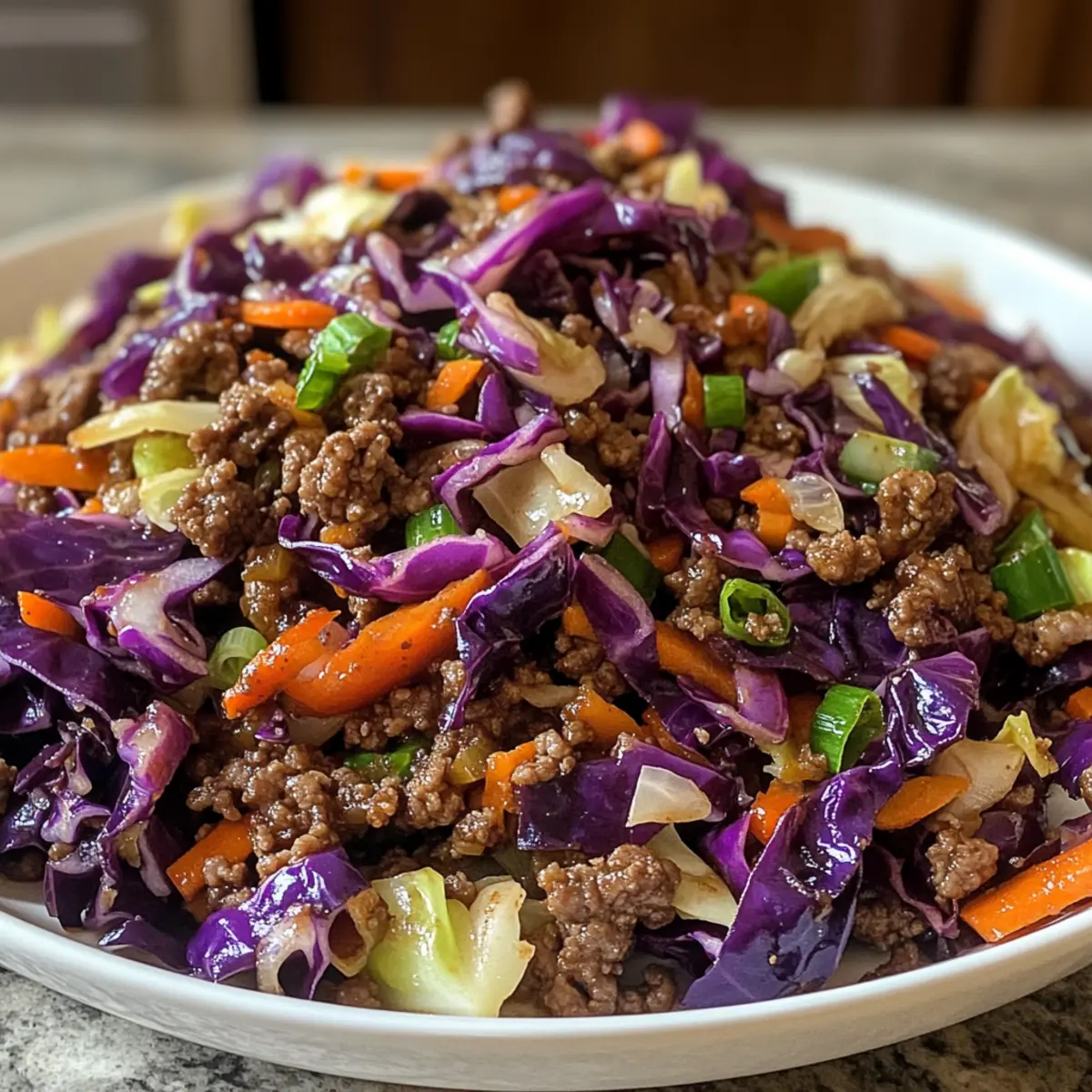 Achte darauf, dass der Kohl und die Karotten fest und knackig sind. Bei Kohl solltest du darauf achten, dass er keine dunklen Flecken hat, während die Karotten eine leuchtende Farbe und keine Falten aufweisen sollten. Frisches Gemüse sorgt für die beste Textur in deinem Rinderhackfleisch Kohl Pfannengericht.