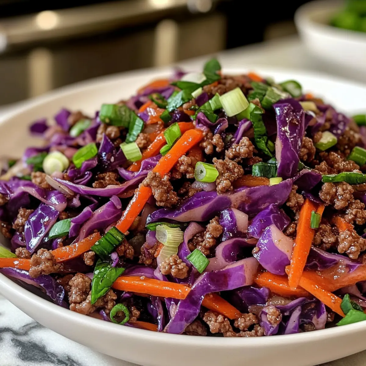 Dieses Rinderhackfleisch Kohl Pfannengericht ist ideal für die Vorbereitung im Voraus! Du kannst das Gemüse – Kohl, Karotten und andere Zutaten – bis zu 24 Stunden vorher schneiden und in einem luftdichten Behälter im Kühlschrank aufbewahren, um Zeit zu sparen. Um die Frische und den Crunch des Gemüses zu bewahren, achte darauf, es getrennt von den Saucen zu lagern. Wenn du bereit bist zu kochen, erhitze einfach das Olivenöl und brate das Hackfleisch an, füge dann das vorbereitete Gemüse bei, und genieße dein schnelles, nährstoffreiches Abendessen in nur wenigen Minuten! So bleibt es nicht nur lecker, sondern auch frisch!