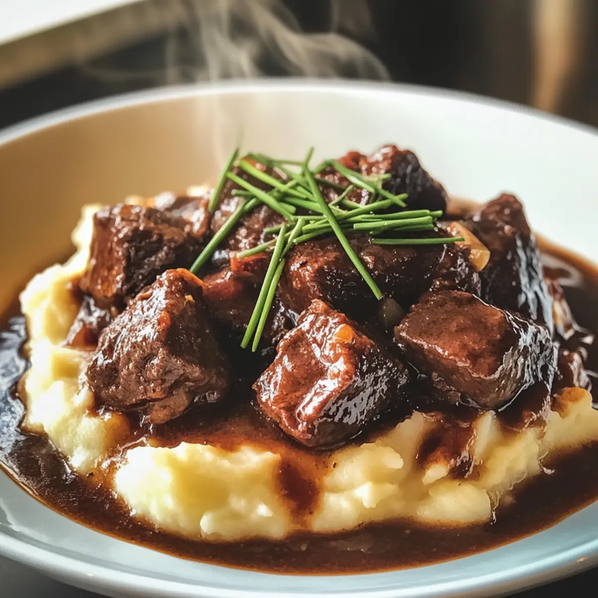 Textur-Kombination: Das zarte Rindfleisch, das förmlich im Mund zerfällt, harmoniert perfekt mit dem cremigen Kartoffelpüree, was für ein echtes Geschmackserlebnis sorgt.