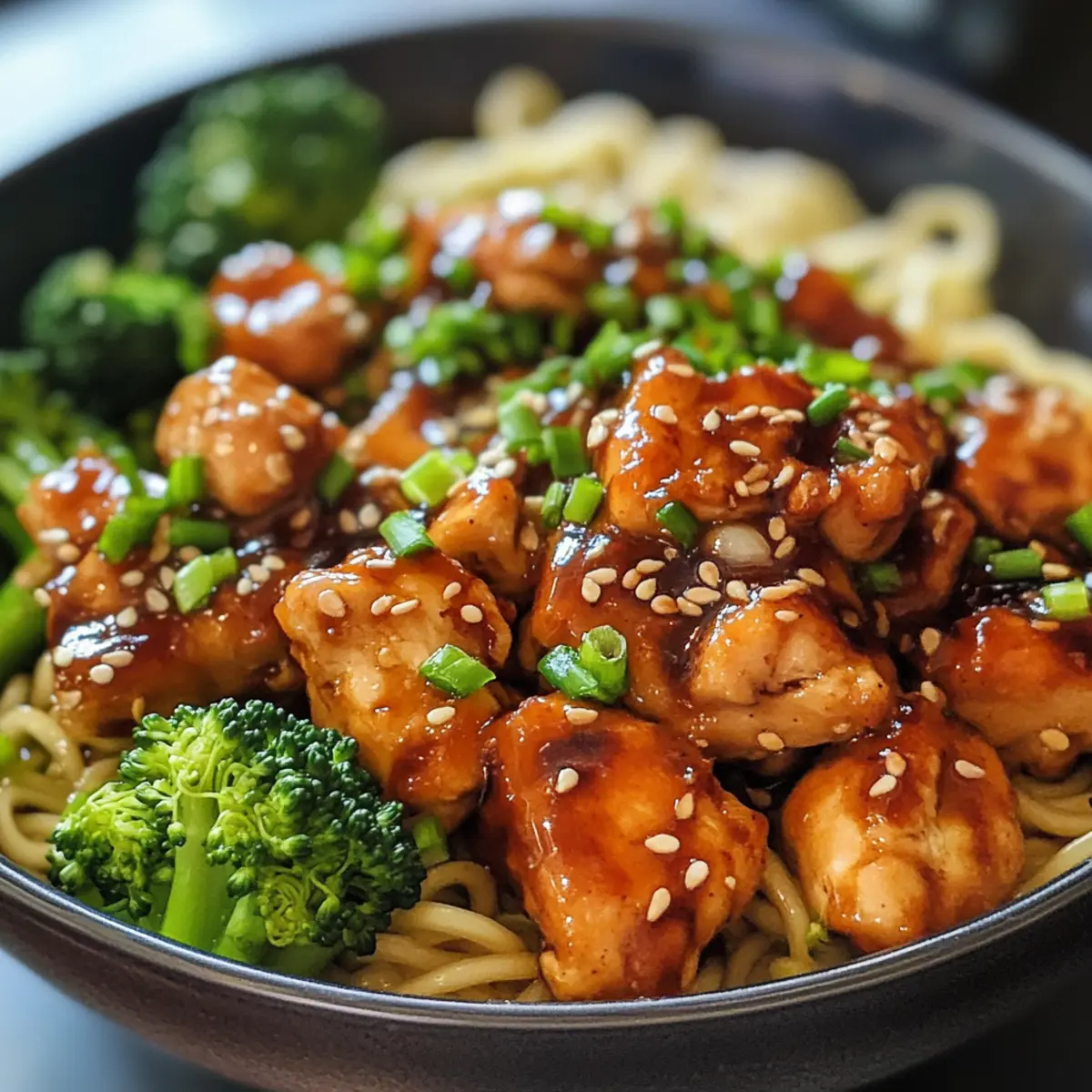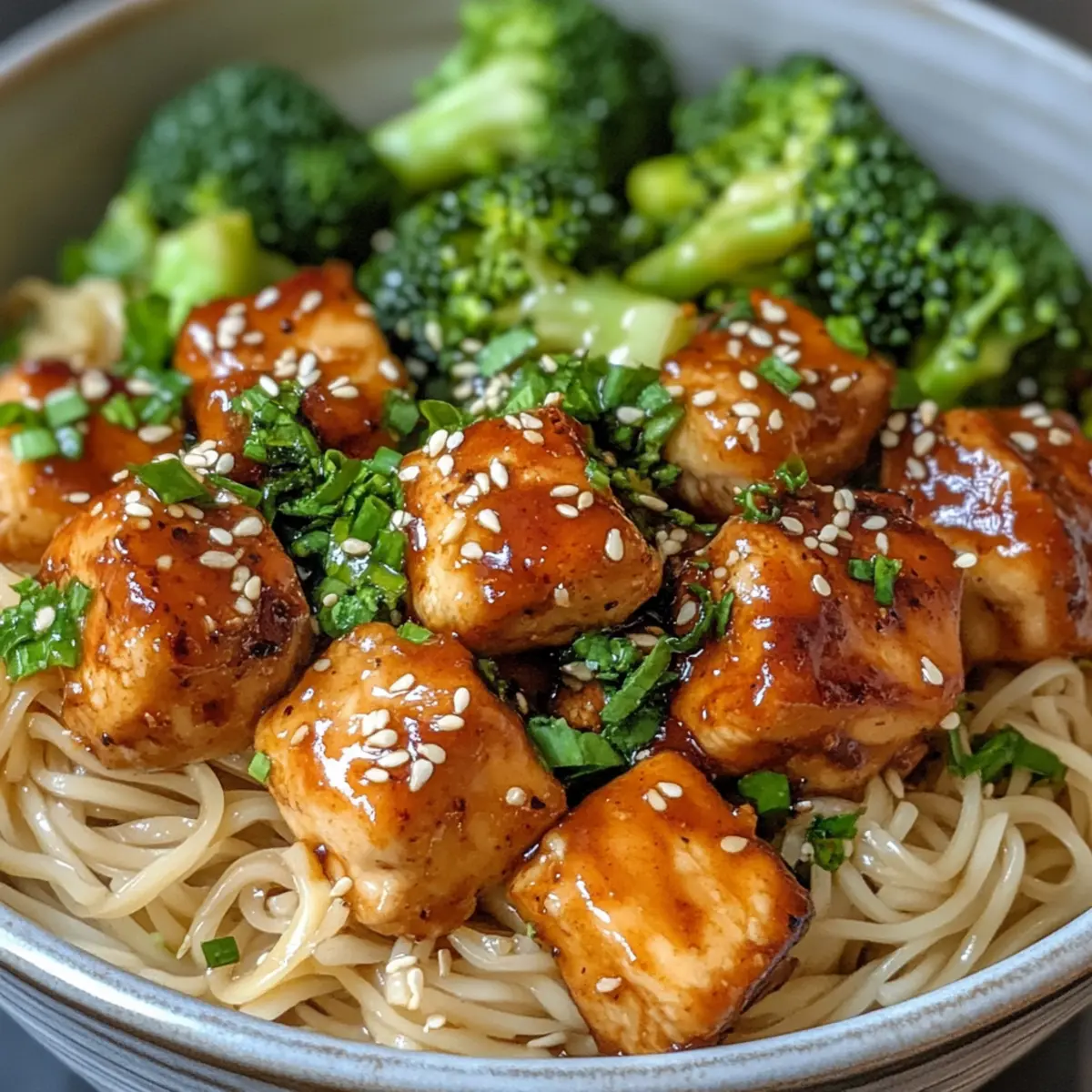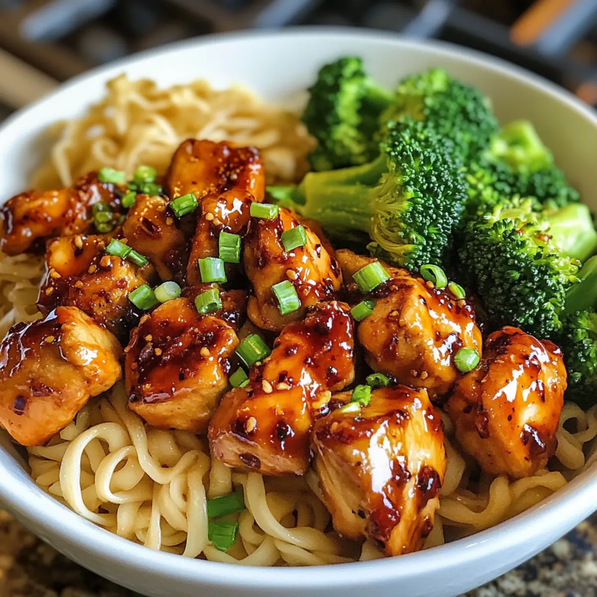Scharfe Knoblauch-Hähnchen und Brokkoli-Nudel-Schalen