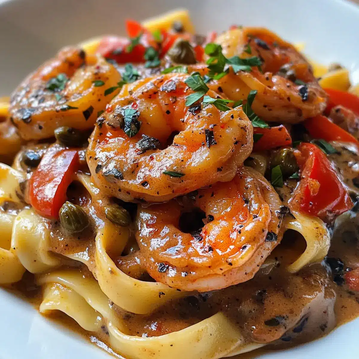 Die Schwarze Garnele Stroganoff lässt sich hervorragend im Voraus zubereiten, was Ihnen wertvolle Zeit in einer hektischen Woche spart. Marinieren Sie die geschälten Garnelen mit Olivenöl und Cajun-Gewürz und lassen Sie sie bis zu 24 Stunden im Kühlschrank ziehen, damit die Aromen gut einziehen. Die Sauce kann ebenfalls am Vortag zubereitet und in einem luftdichten Behälter bis zu 3 Tage im Kühlschrank aufbewahrt werden; achten Sie darauf, diese vor dem Servieren sorgfältig aufzuwärmen, um die cremige Konsistenz zu erhalten. Kochen Sie die Fettuccini-Nudeln frisch, sobald Sie bereit sind, zu servieren, damit sie perfekt al dente sind. So haben Sie in kürzester Zeit ein delikates Gericht auf dem Tisch, das dennoch frische und köstliche Aromen bietet!