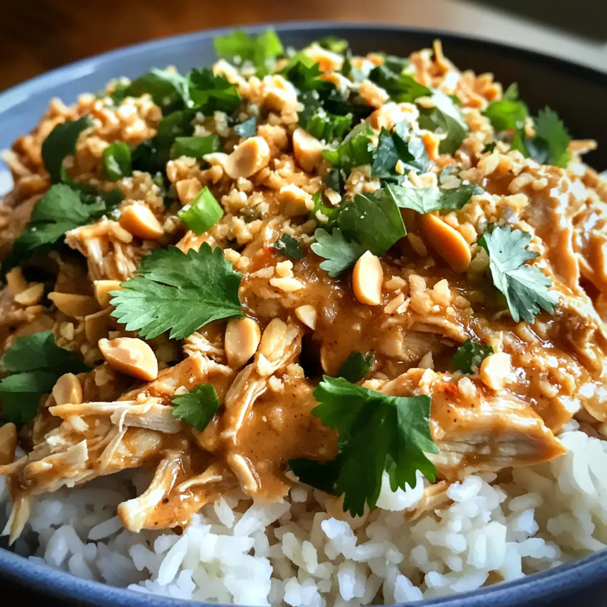 Wie tauche ich das Slow Cooker Erdnuss-Hühnchen auf?
