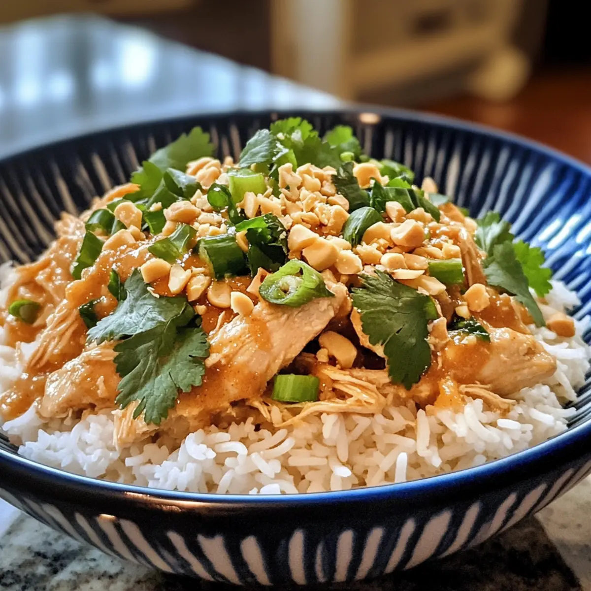 Nudeln: Servieren Sie das Erdnuss-Hühnchen über Reisnudeln oder Zoodles (Zucchini-Nudeln) für glutenfreie Alternativen.
