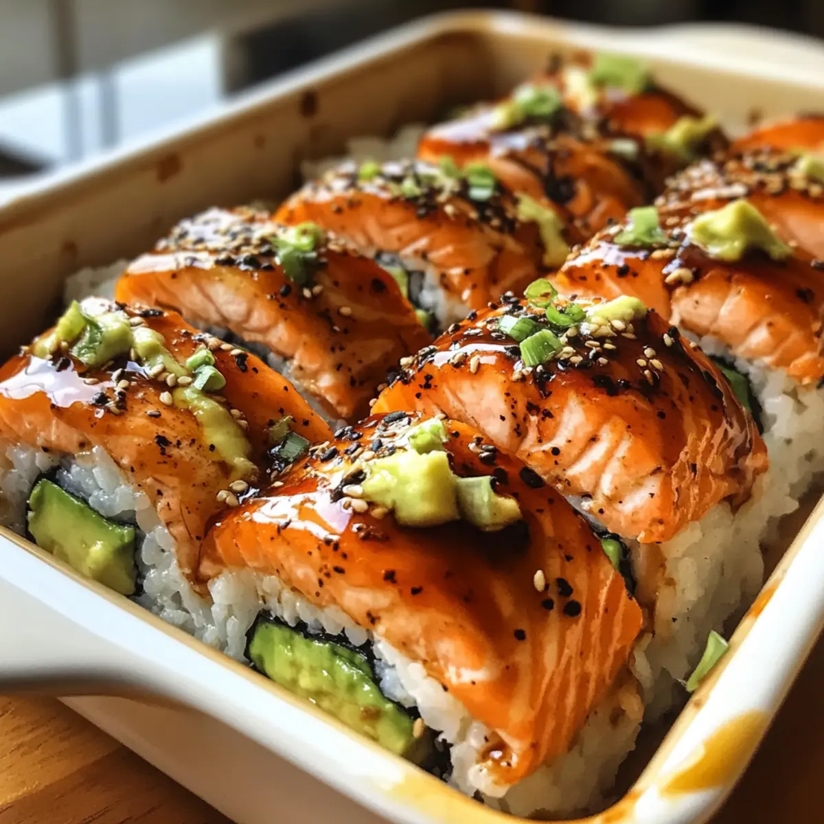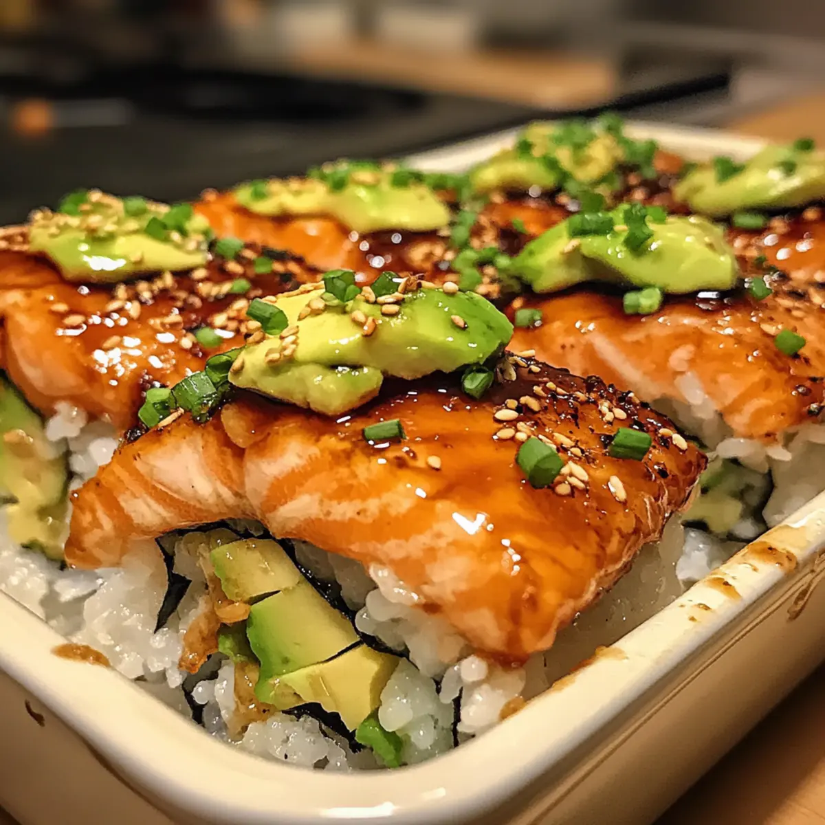 Entdeckt die köstlichen Möglichkeiten dieses Teriyaki Lachs Sushi Auflaufs und lasst euch von seinem einzigartigen Geschmack verführen!