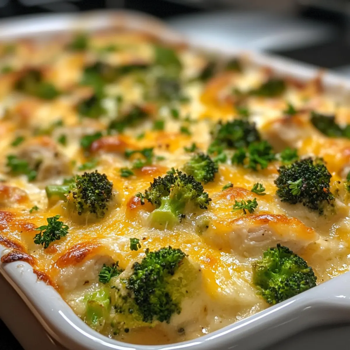 Nehme den Auflauf aus dem Ofen und lasse ihn einige Minuten abkühlen. Garniere den Truthahn-Brokkoli-Auflauf leicht mit frischer Petersilie, bevor du ihn servierst. Dies sorgt nicht nur für eine ansprechende Optik, sondern gibt auch einen frischen Geschmackskick, der das Gericht perfekt abrundet.