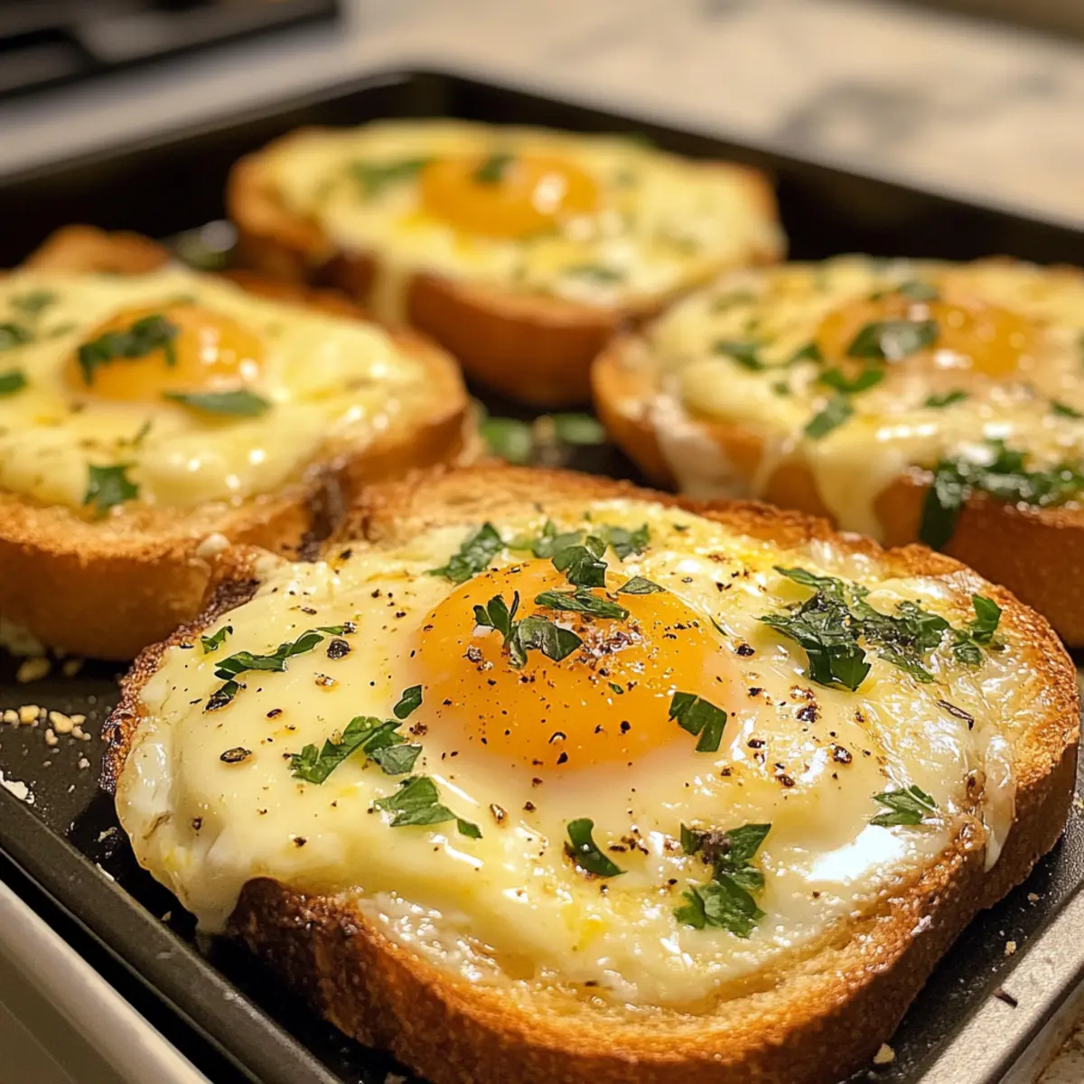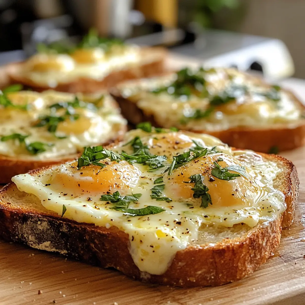 Frisches Baguette: Genießen Sie die knusprige Textur, die hervorragend zu den cremigen Eiern passt. Ideal, um jede köstliche Ecke zu erreichen!
