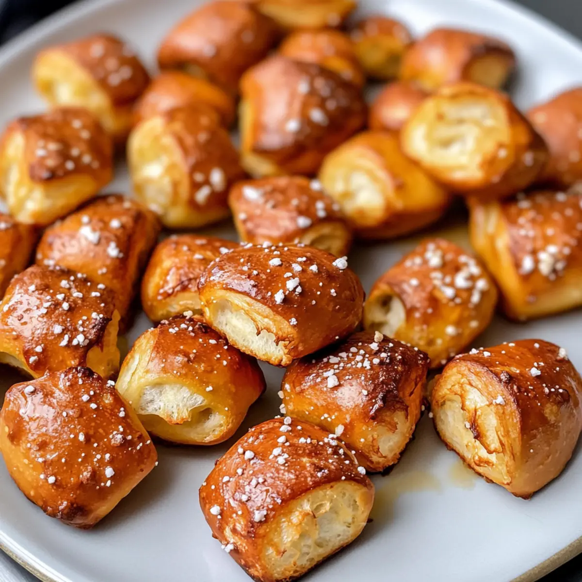 Bestreue die Brezelbissen großzügig mit Brezelsalz, um den klassischen Geschmack zu verstärken. Backe sie im vorgeheizten Ofen für etwa 14 Minuten, bis sie goldbraun und knusprig sind. Das Aroma wird deine Küche durchfluten und dir das Wasser im Mund zusammenlaufen lassen.