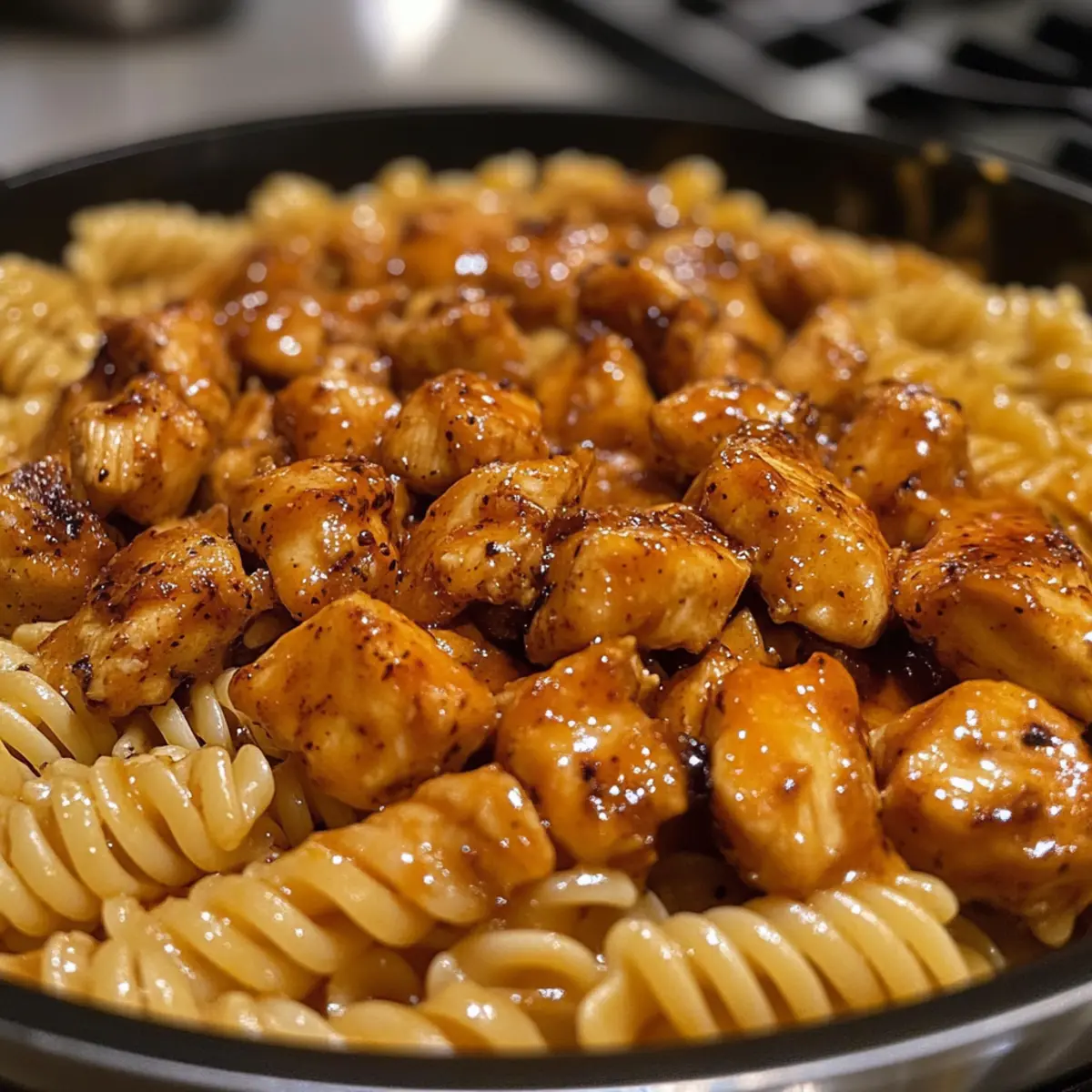 Verdrehte Pasta mit Honig-Knoblauch-Hühnchen