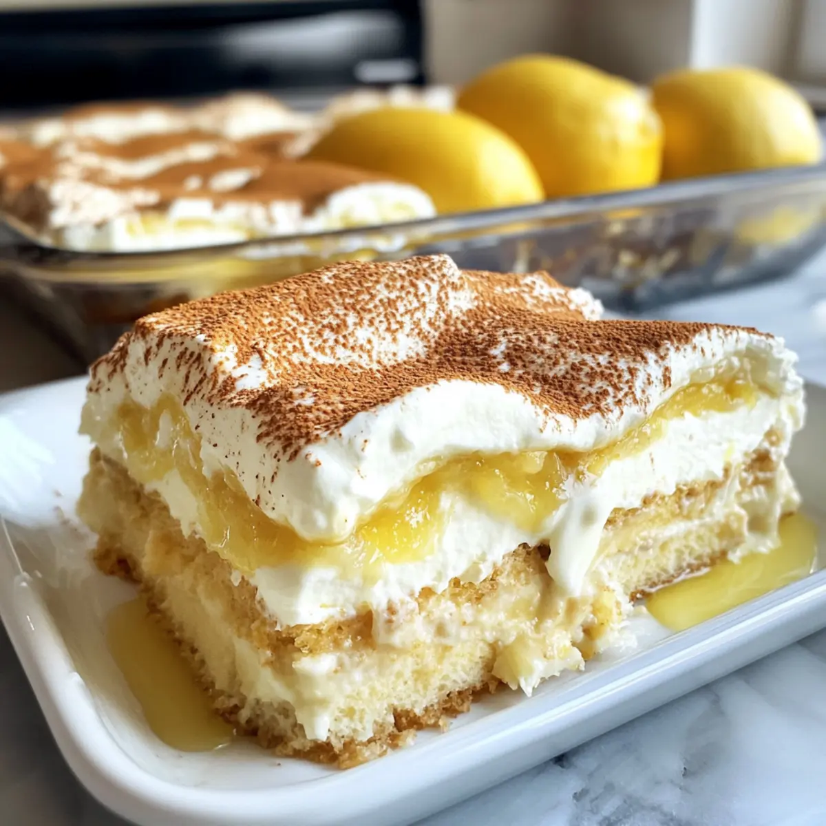 Erfrischende Aromen: Das Zitronen-Tiramisu begeistert mit einer spritzigen Zitrusnote, die jeden Löffel zu einem Genuss macht.